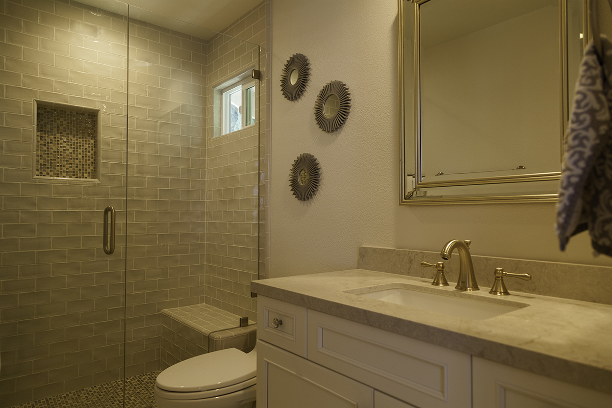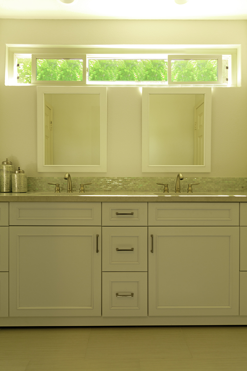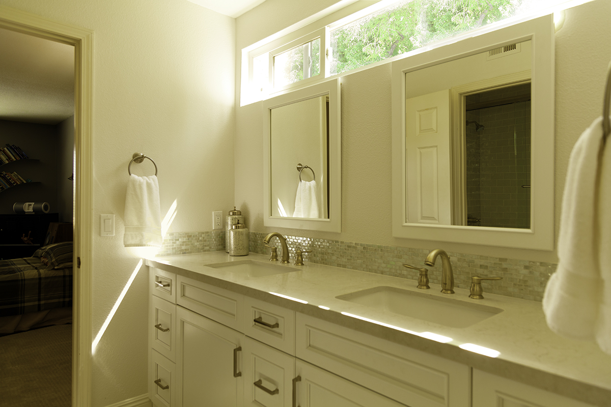 Natural Light from High-Set WindowThis remodel brought some life to these bathroom spaces and the timing of this remodel fit easily into the homeowners’ schedule. See a full gallery of this two part remodel and others in our bathrooms project gallery. If you’re located near Thousand Oaks and you’re interested in talking about a bathroom remodel, contact us or come visit us at our showroom in Newbury Park. WESTSIDE REMODELING ~ Bob SturgeonDesigner: Alana BusseLead Carpenter: Jon Barrett